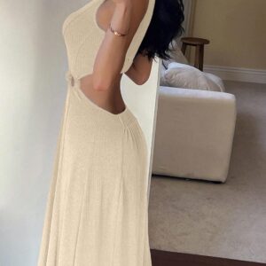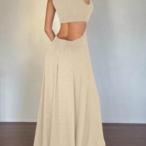 2025 Plain Maxi Long Dress for Women Sleeveless V-Neck Long Elegant Dress
