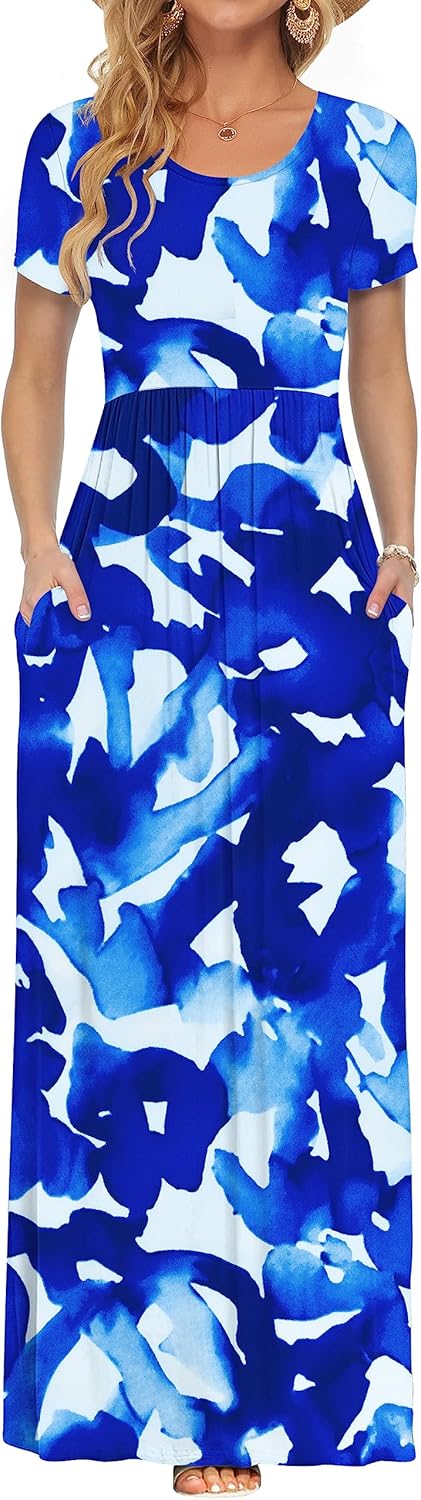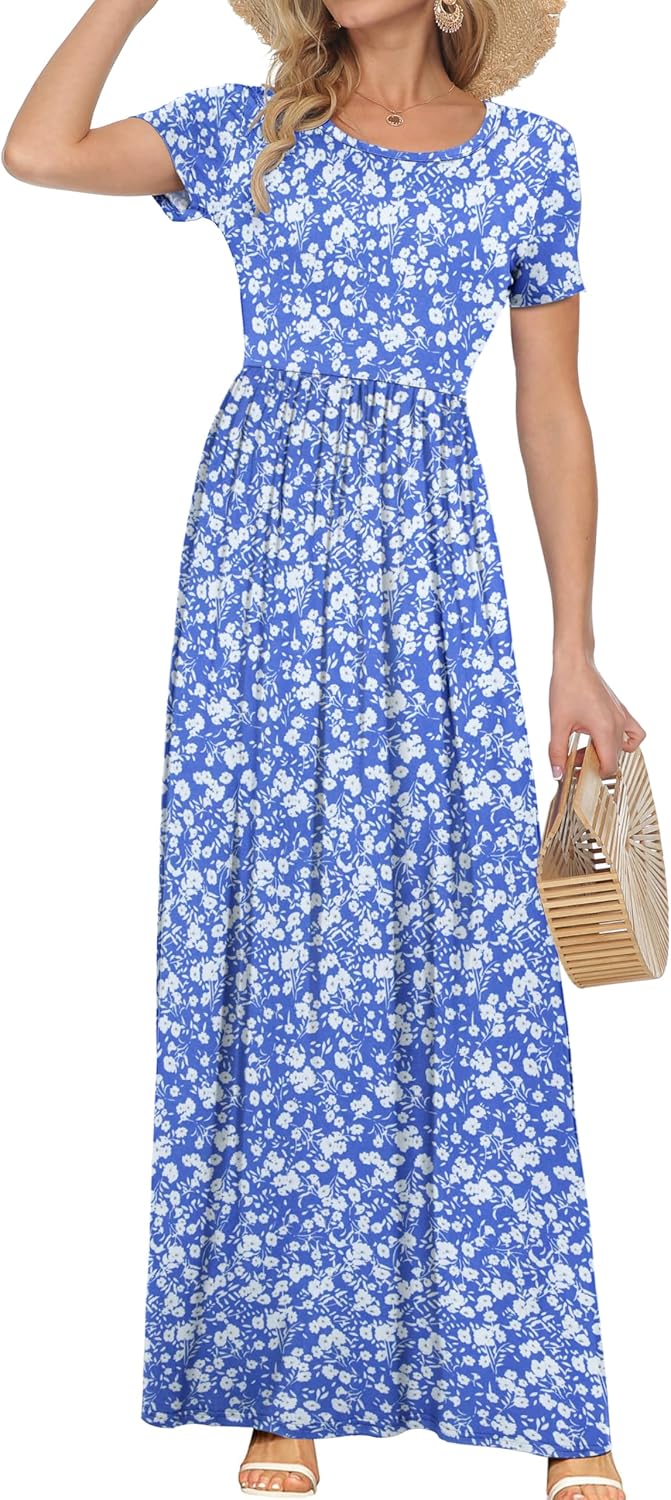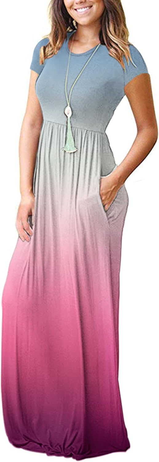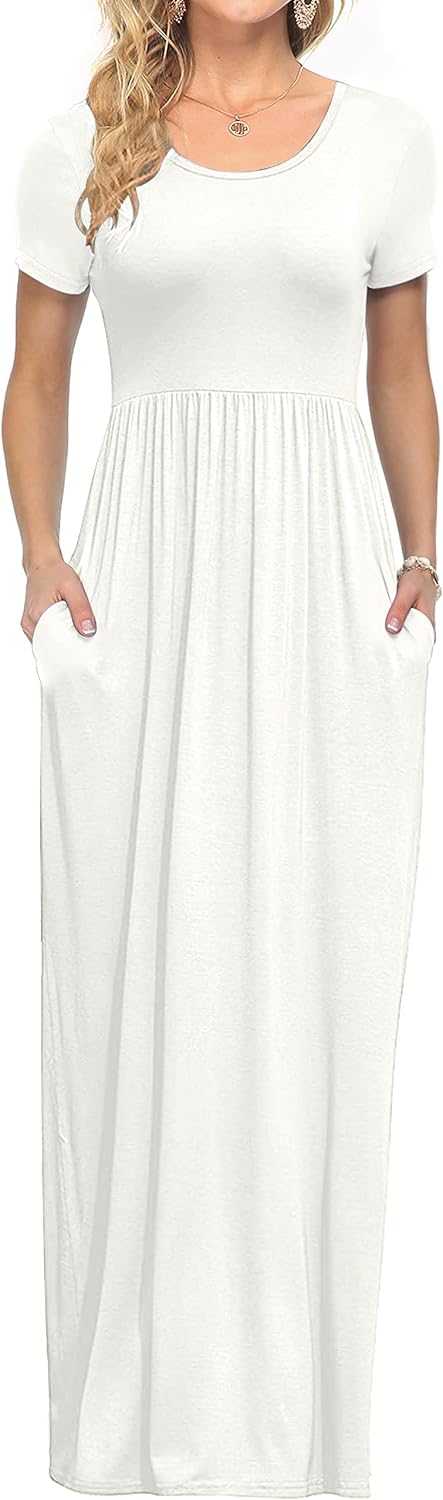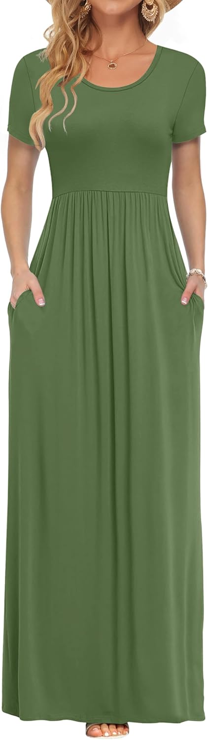 AUSELILY Women’s Short Sleeve Loose Plain Casual Long Maxi Dresses for Women 2025