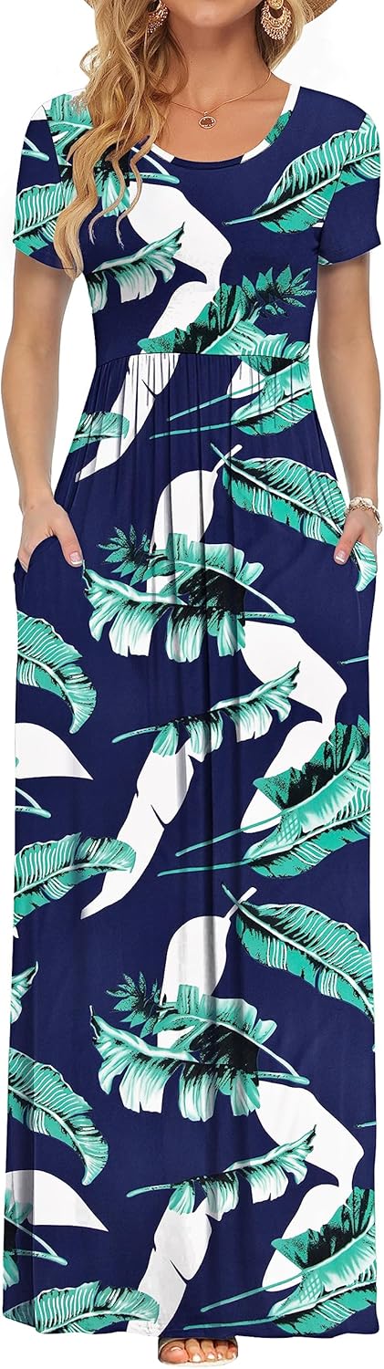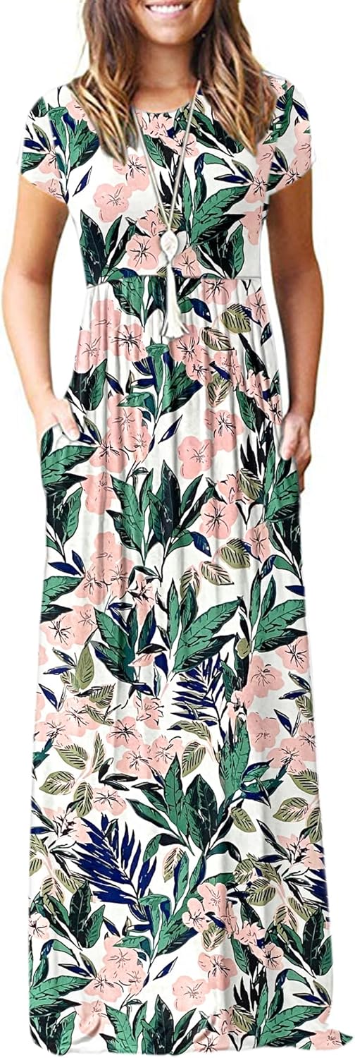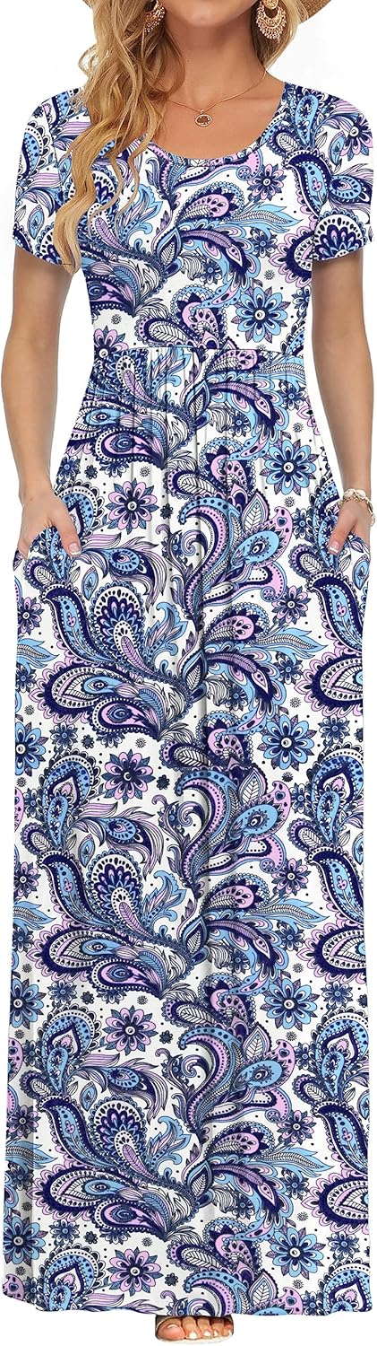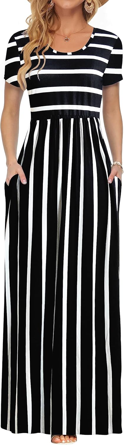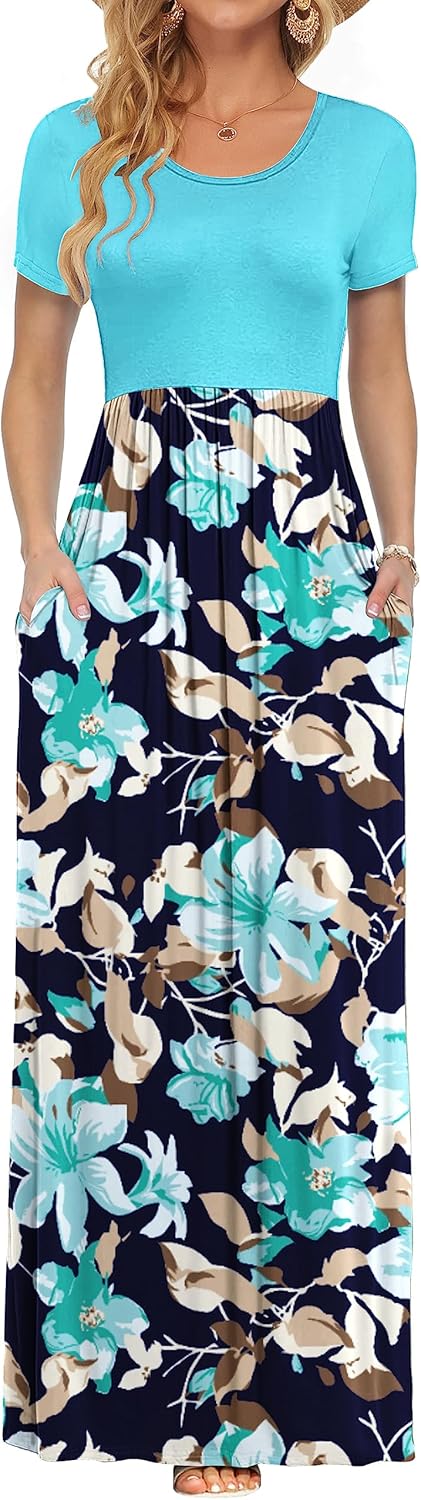 AUSELILY Women’s Short Sleeve Loose Plain Casual Long Maxi Dresses for Women 2025