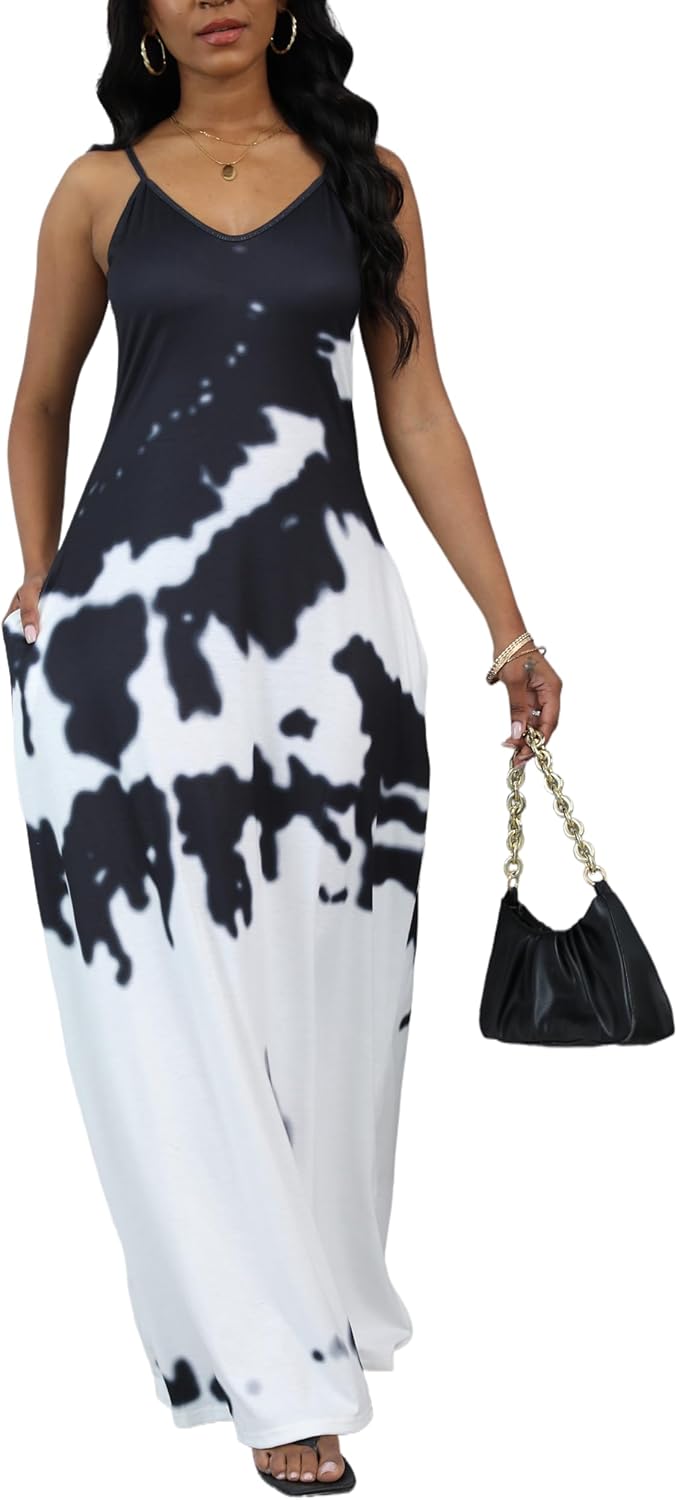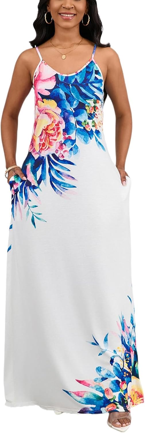 2025 Women's Casual Summer Floral Long Maxi Dresses Floor Length Sleeveless Plus Size Sundresses