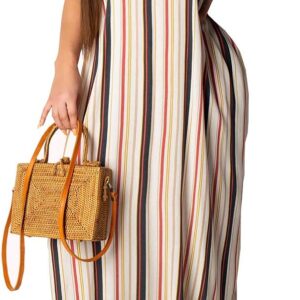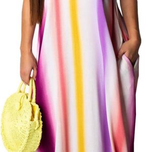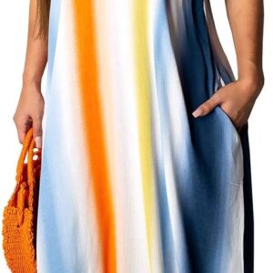 spaghetti strap maxi dress, V neck,sleeveless dress,floor length dress,stripe maxi dress,maxi dress with pockets,beach cover up dress. Loose fit and on-seam pockets, can go as a cover up or a more relaxed dress.