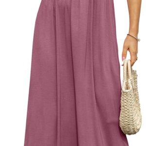 DB MOON Womens 2025 Summer Maxi Dresses Casual Short Sleeve Empire Waist Spring Long Dress with Pockets