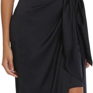 Donna Morgan Women’s Dresses One Shoulder Faux Wrap Light Charmeuse Maxi with Tie Waist Occasion Event Party Guest of