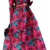 - Front and back V-necks, shirring at shoulders, sleeveless, waistband with center front twist detail, and a pleated maxi skirt.