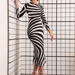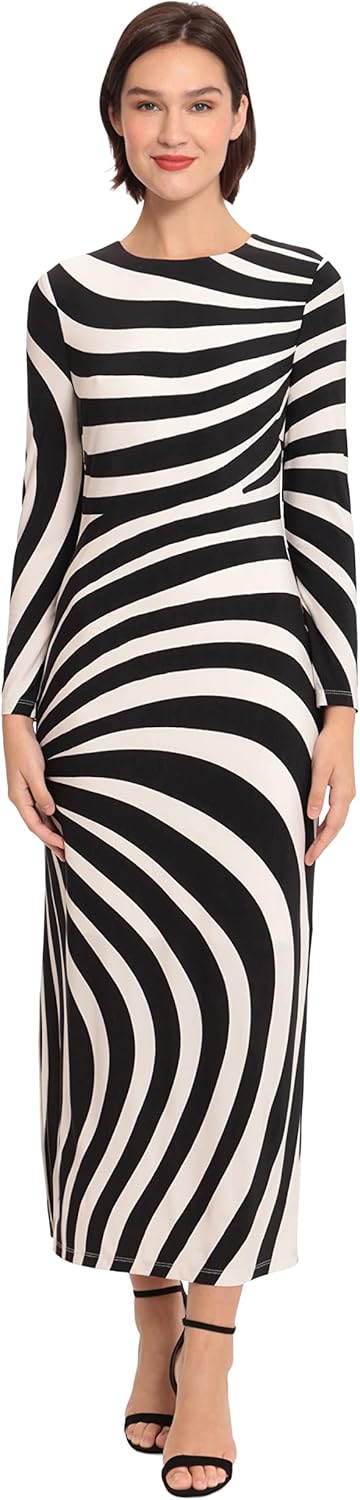 Donna Morgan Women’s Dresses Striped Long Sleeve Easy Body Maxi Dress