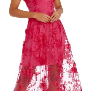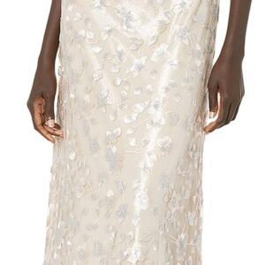 Dress the Population Women’s Embellished Plunging Gown Sleeveless Floral Long Dress