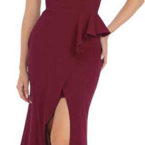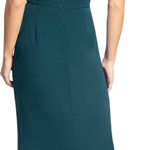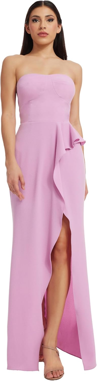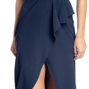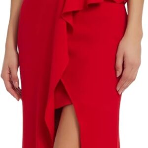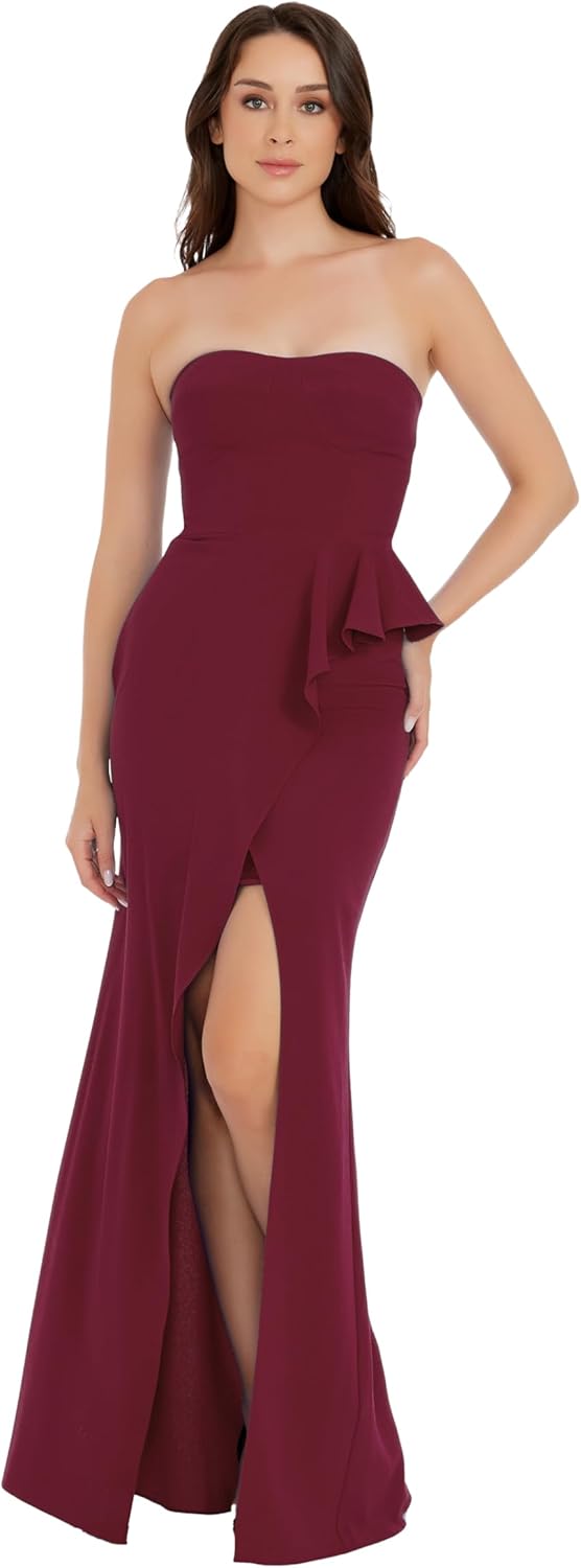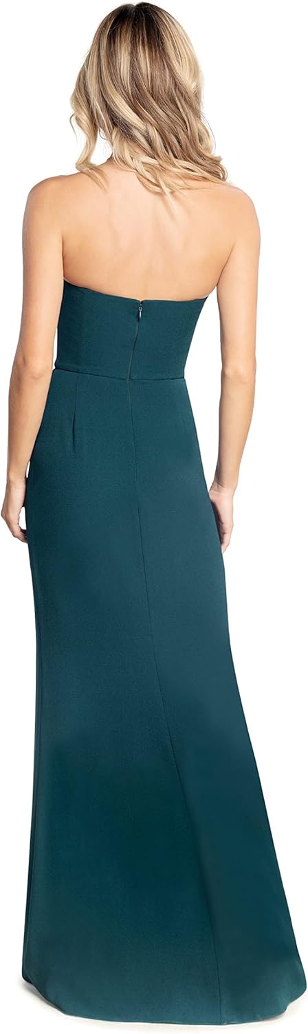 A sweetheart neck and soaring slit style a stunning evening gown with a fitted waist and floor-length asymmetrical drape skirt. This classic evening gown is sure to turn heads.