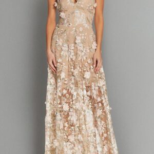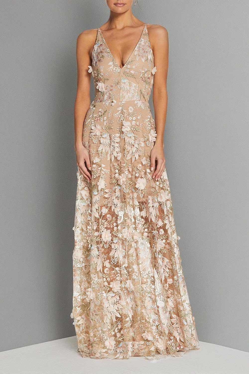 Dress the Population Women’s Sidney Sleeveless Plunge Neckline Fit and Flare Maxi Dress