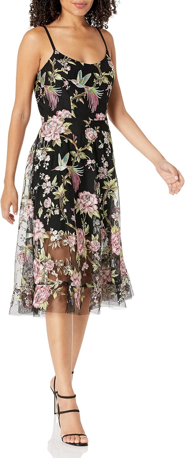 Dress the Population womens Uma Uma Sweetheart Bodice Fit and Flare Midi Dress
