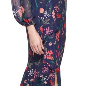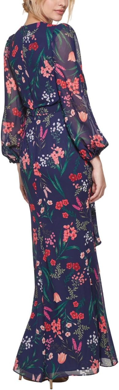 Beaded detailing | Bow tie at waist | Floral organza | Foil Material | Zip up back | Flattering tie waist |