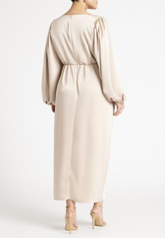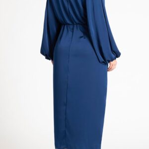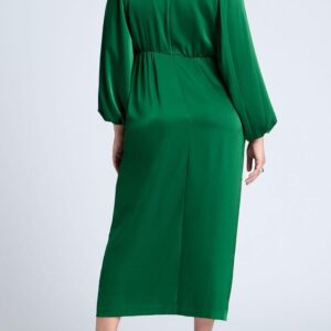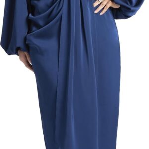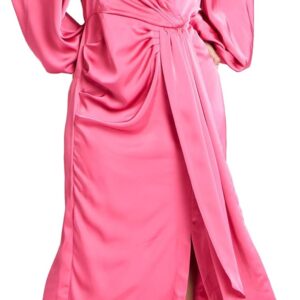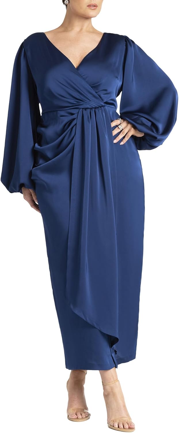 Exude glamour in this maxi dress, designed with a draped front, graceful pleats, and a slit detail for a touch of allure.