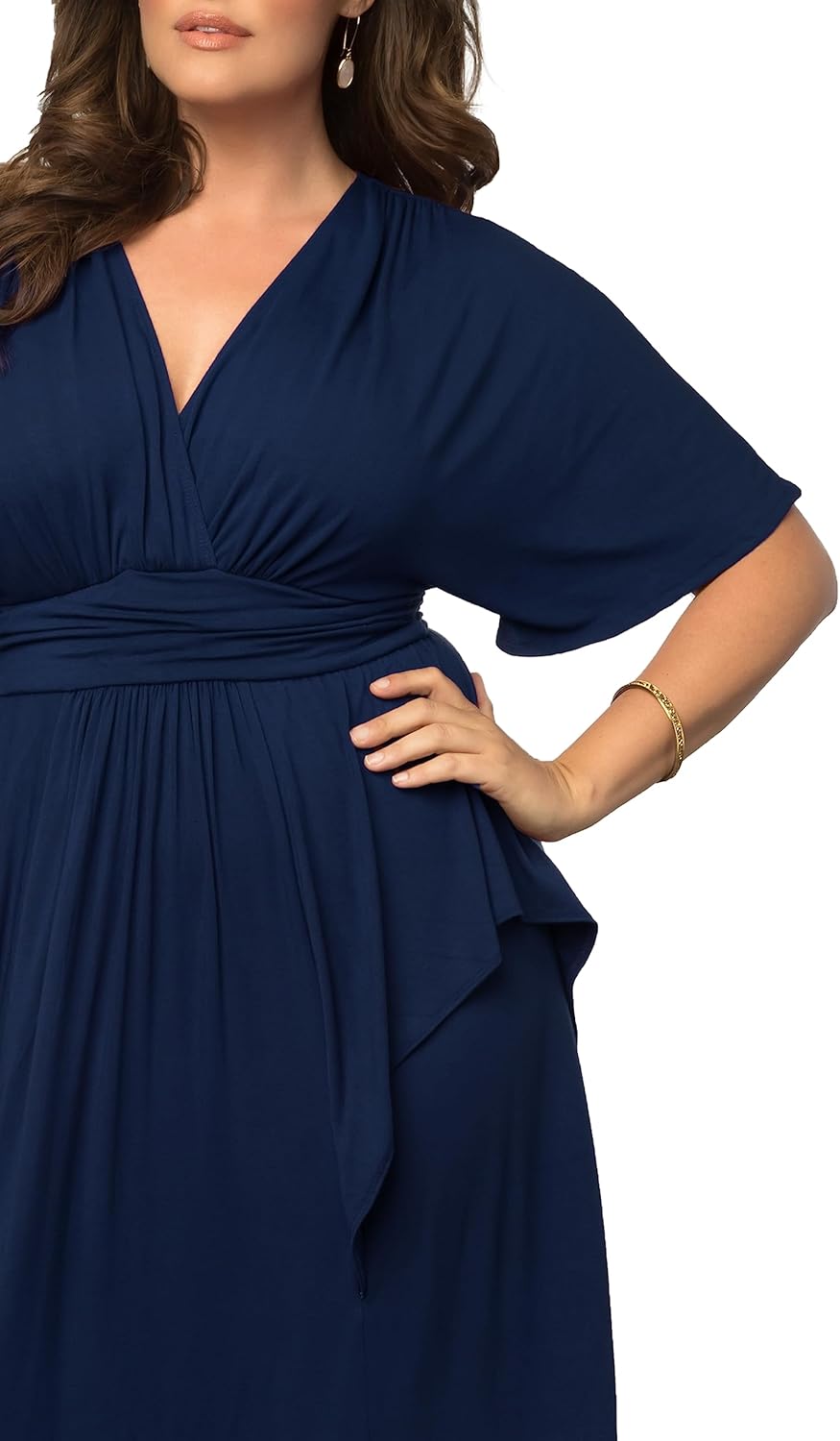 Feel like a gypsy goddess in our Indie Flair Maxi Dress. Not your typical maxi, this style is designed with dramatic features like kimono sleeves and a draped front for a layered and slightly peplum look. So flatter your curves and let your free-spirited style soar in this must-have piece! 92% Polyester, 8% Spandex. We recommend hand washing in cold water, with like colors and no bleach.