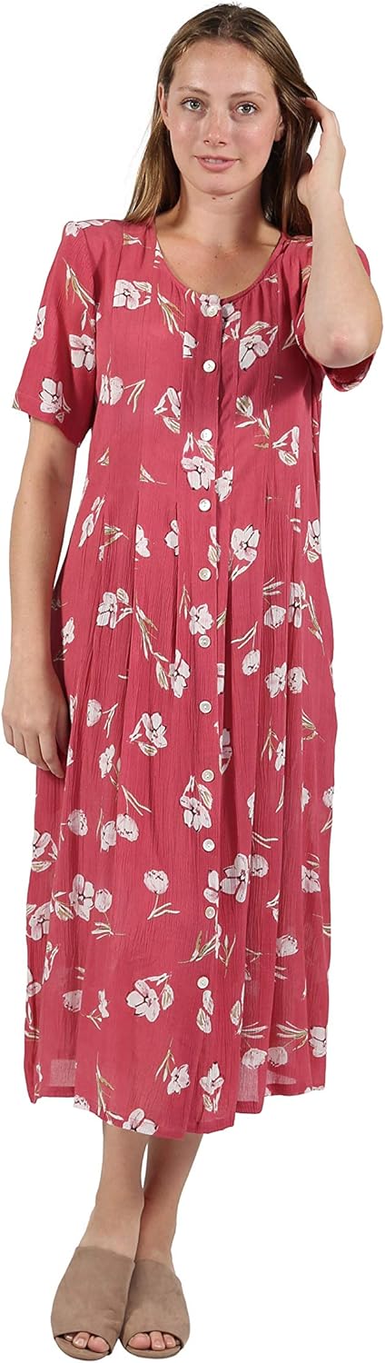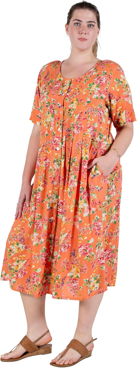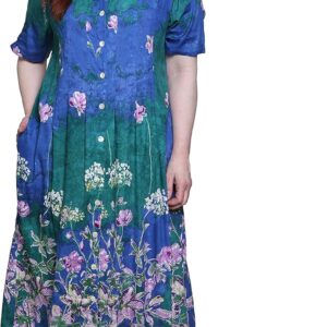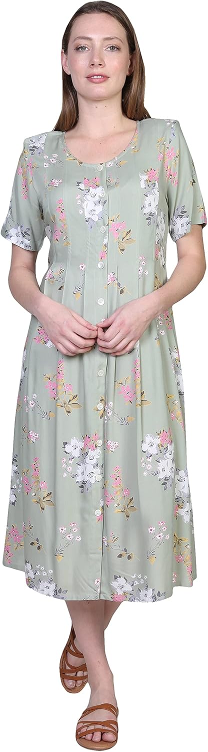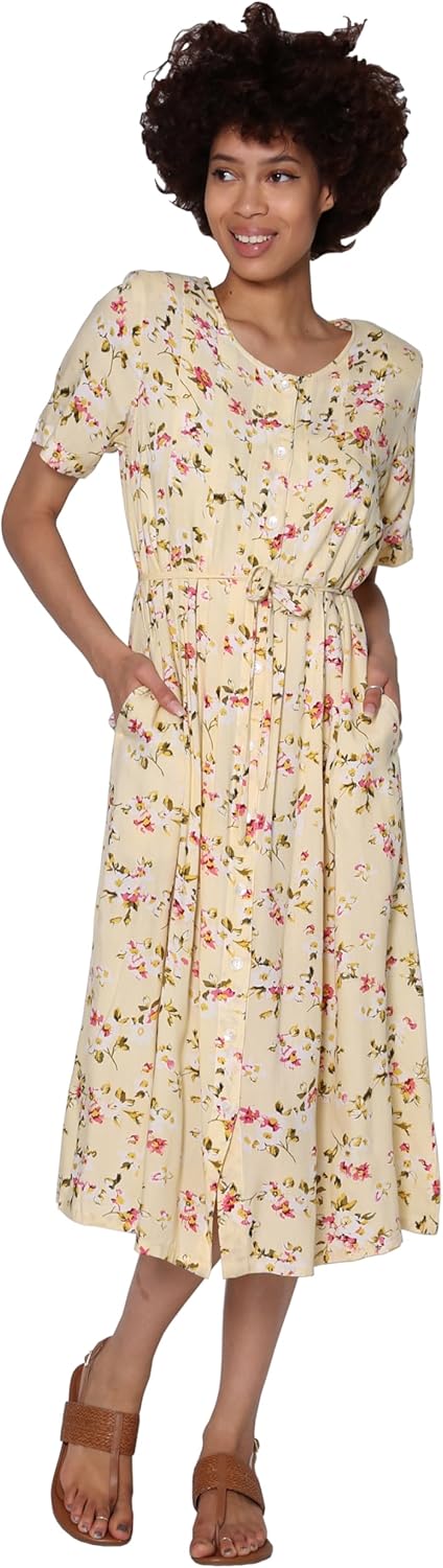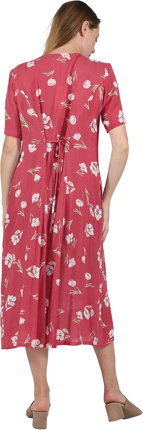 LA CERA Women’s Half Sleeve Round Neck Cotton Button-Down Dress