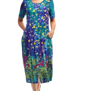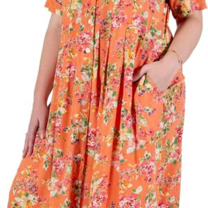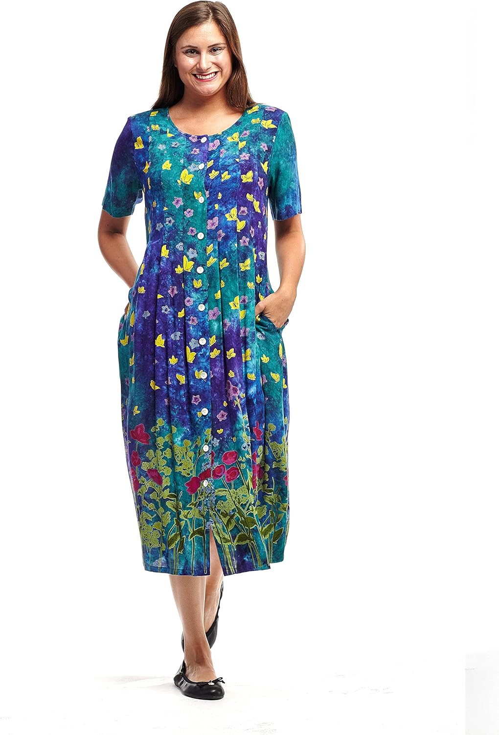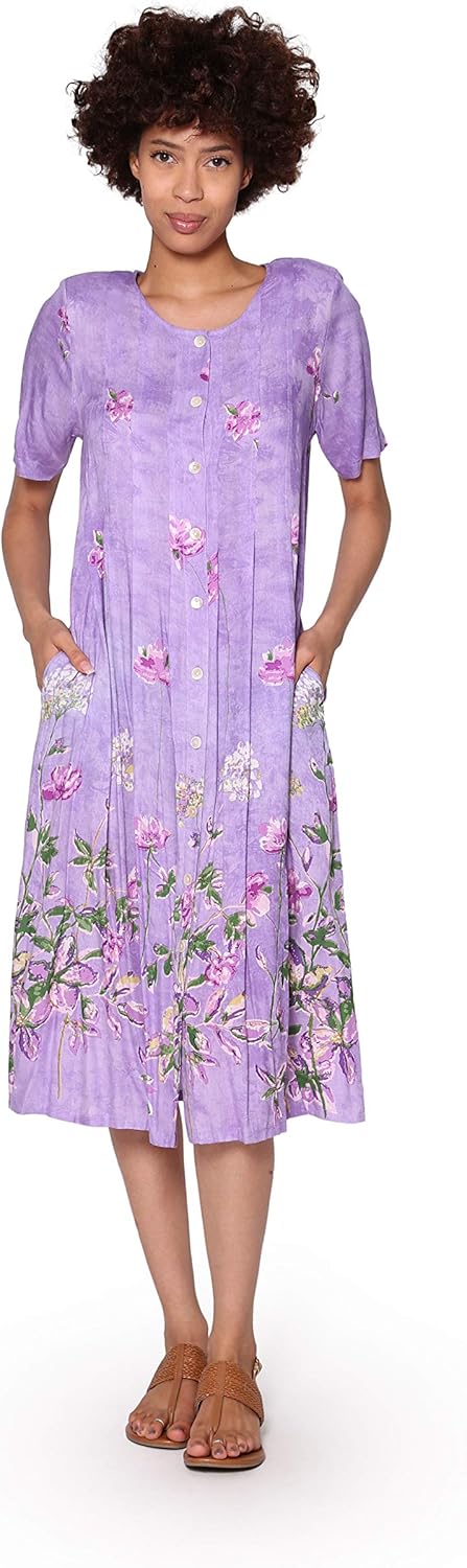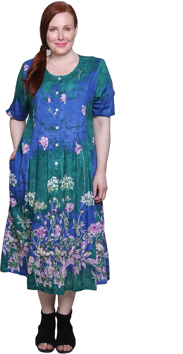 LA CERA Women’s Half Sleeve Round Neck Cotton Button-Down Dress