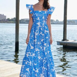 London Times Square Neck Maxi Ruffle Detail | Summer Dresses for Women