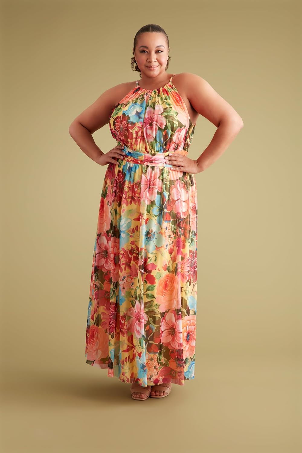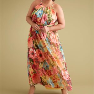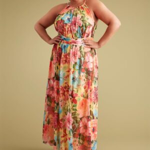 London Times Women’s Mesh Halter Maxi with Ruched Waistband Event Guest of Occasion Garden Party