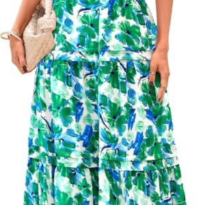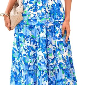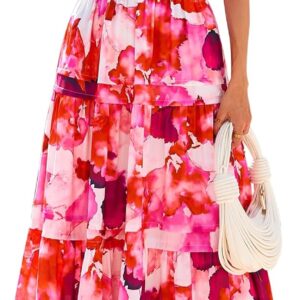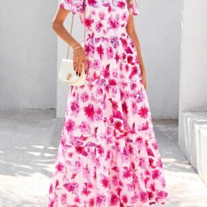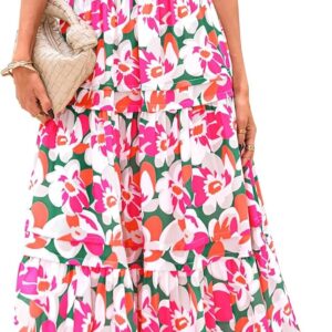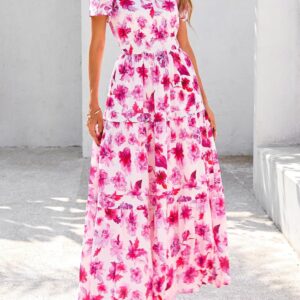 PRETTYGARDEN Women’s 2025 Summer Boho Maxi Dresses Floral Short Sleeve V Neck A Line Tiered Flowy Long Beach Vacation Dress
