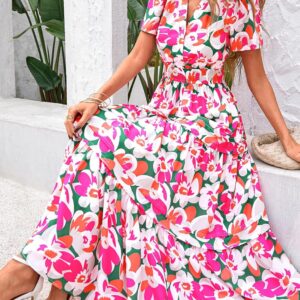 PRETTYGARDEN Short Sleeve V Neck Printed Beach Vacation Dresses for Women