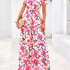 PRETTYGARDEN Summer Maxi Dresses for Women Flowy Bohemian Floral Dress