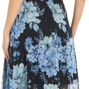 This show-stopping maxi dress from R&M Richards is designed for sophistication and charm. Crafted with a beautiful floral print pattern over semi-sheer chiffon overlay, it offers an ethereal, flowing silhouette perfect for any formal, semi-casual daytime occasion. The halter neckline enhances the graceful appeal, while the keyhole detail adds a touch of intrigue. Its lightweight fabric ensures a comfortable fit while exuding refined elegance. This sleeveless dress is ideal for events like weddings, evening parties or vacations, making it a versatile addition to our wardrobe. The A-line design, paired with a flattering waistband, ensures a polished and timeless look.