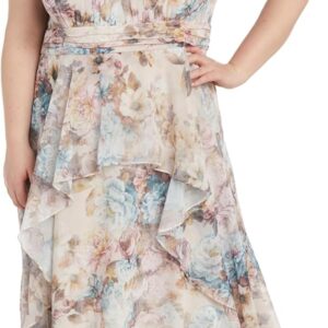 Step into effortless elegance with this maxi dress from R&M Richards, a breathtaking blend of color, movement and style. This vibrant satin maxi dress features a bold coral/lavender floral print, making it a standout choice for weddings, garden parties and chic evening events. The peplum waist detail flatters your figure, while the ruffle-accented halter neckline adds a playful yet refined touch. Designed for graceful movement, the lightweight satin fabric drapes beautifully, ensuring you feel as stunning as you look/ Whether you’re twirling on the dance floor or posing for pictures, this dress brings an air of modern romance to any occasion.