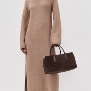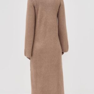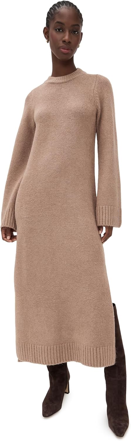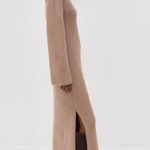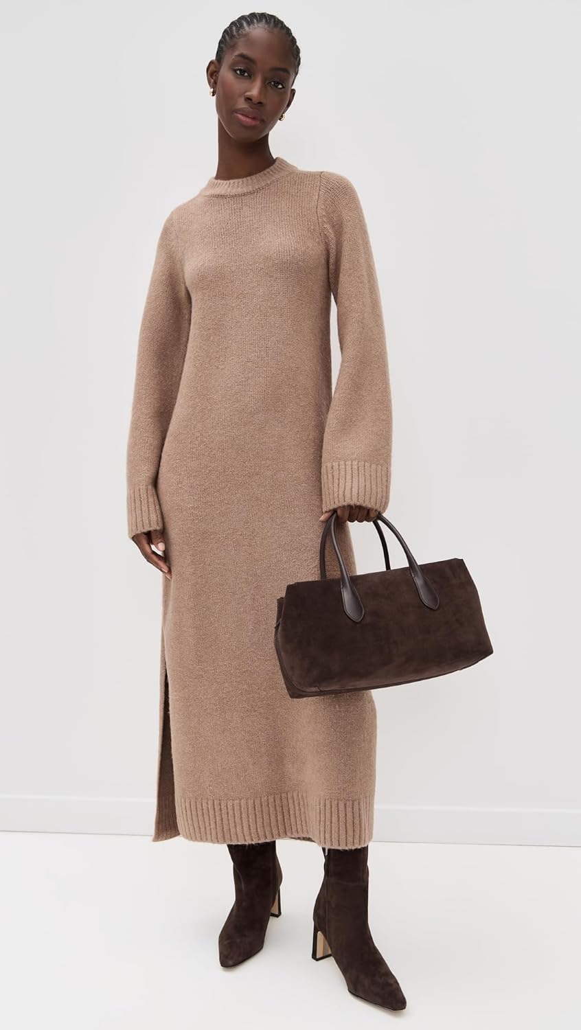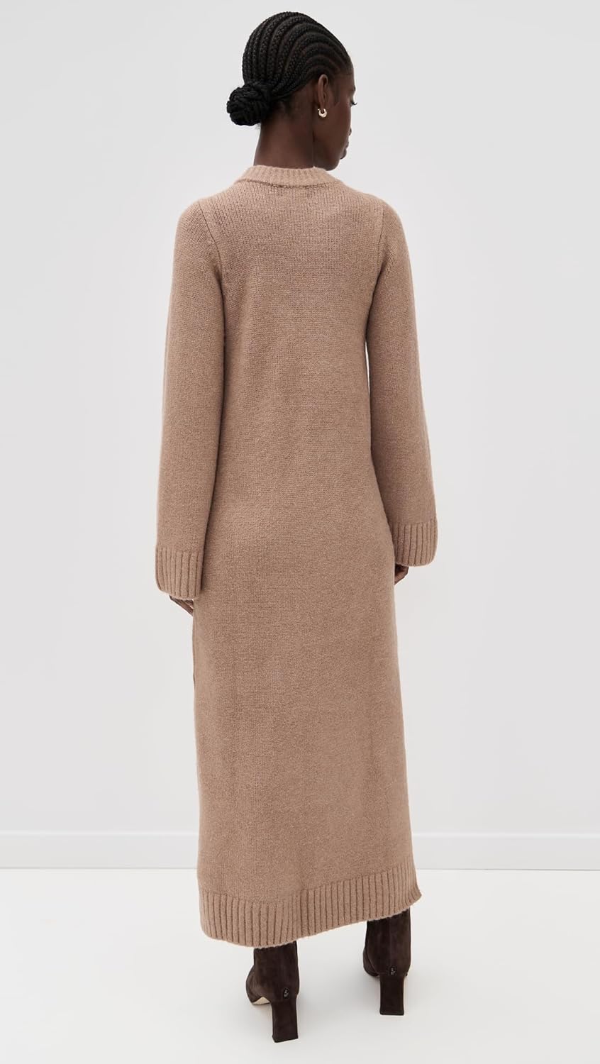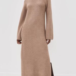The Lorraine is your dreamy oversized cool girl sweater dress. In fall’s softest maple brown knit, you’ll feel chic and effortlessly cool. Pair with boots to elevate the look. Has a nice slit to show a little leg