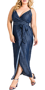 ![]() Plus Size Denim Spaghetti Strap Maxi Wrap Dress