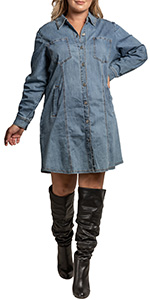 ![]() Plus-Size Full Sleeve Denim Shirt Dress Knee Length