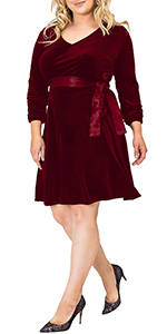 ![]() Plus Size Stretch Velvet Satin Belt Aline Dress