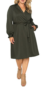 ![]() Plus Size Dark Olive Midi Length Long Sleeve Wrap Dress