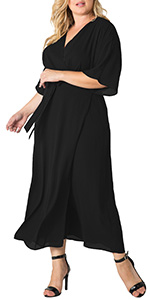![]() Plus Size Black Kimono Wrap Dress Maxi Length