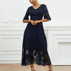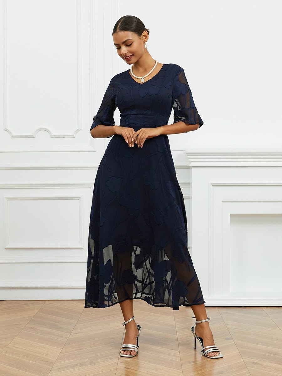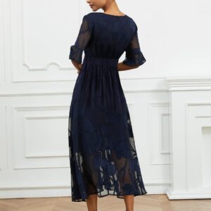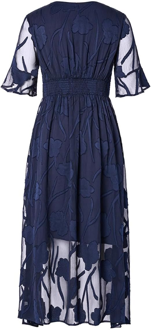 Summer Maxi Dresses for Women 2025 Casual Flutter Sleeve V Neck Cocktail Dress Smocked Elegant Ruffle A-Line Flowy Lace Dress