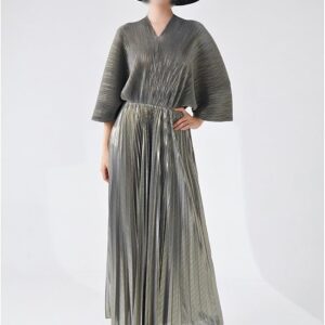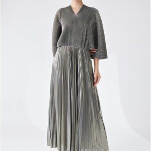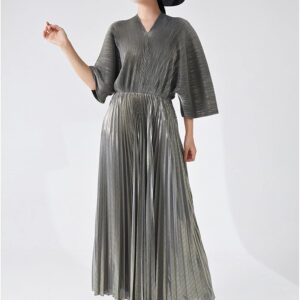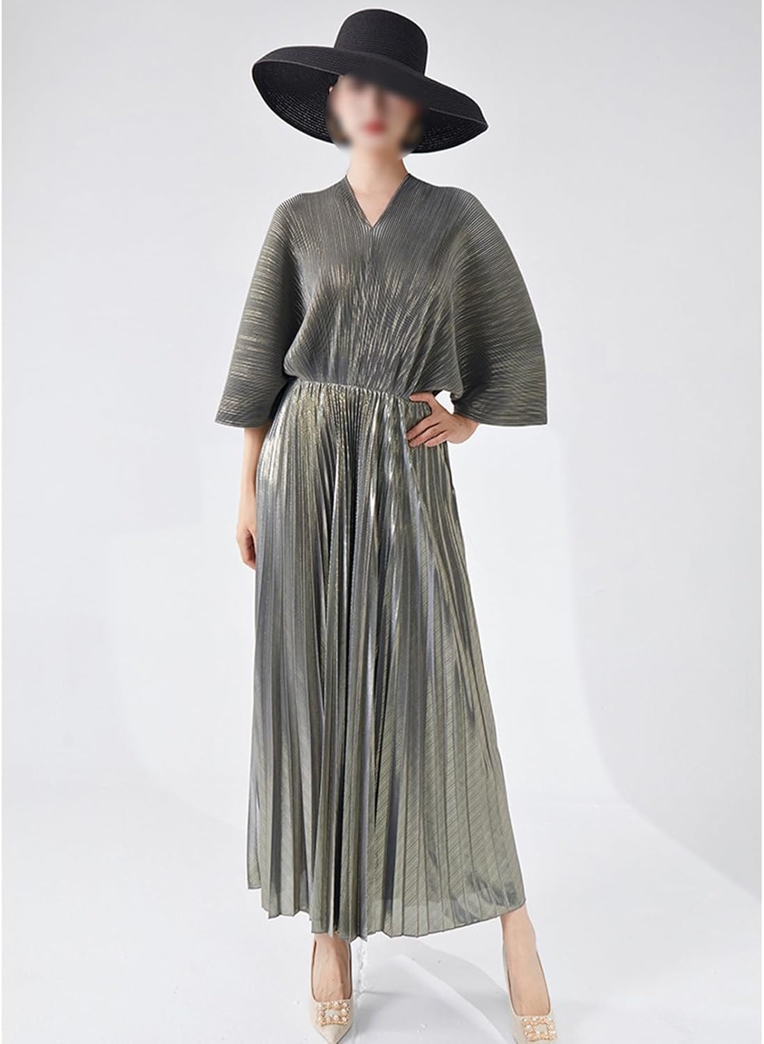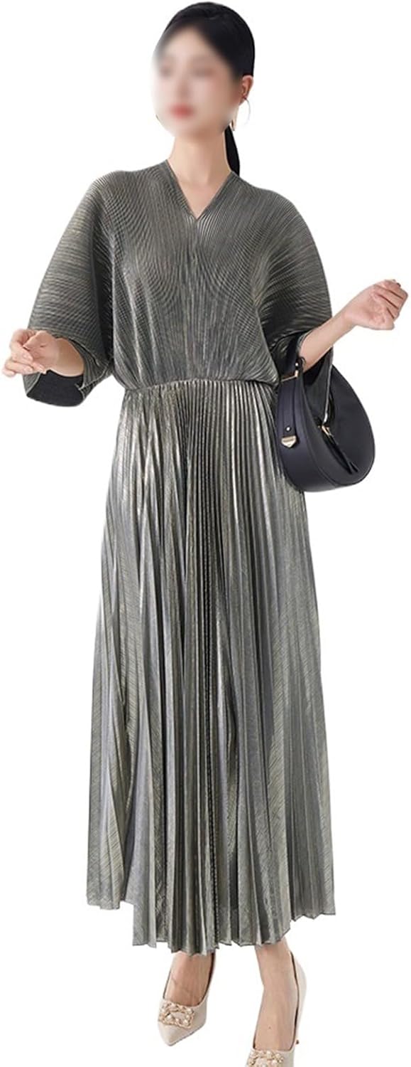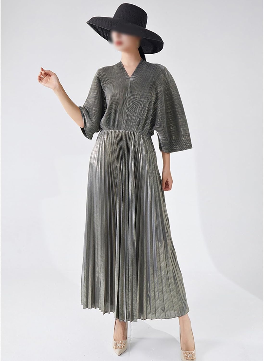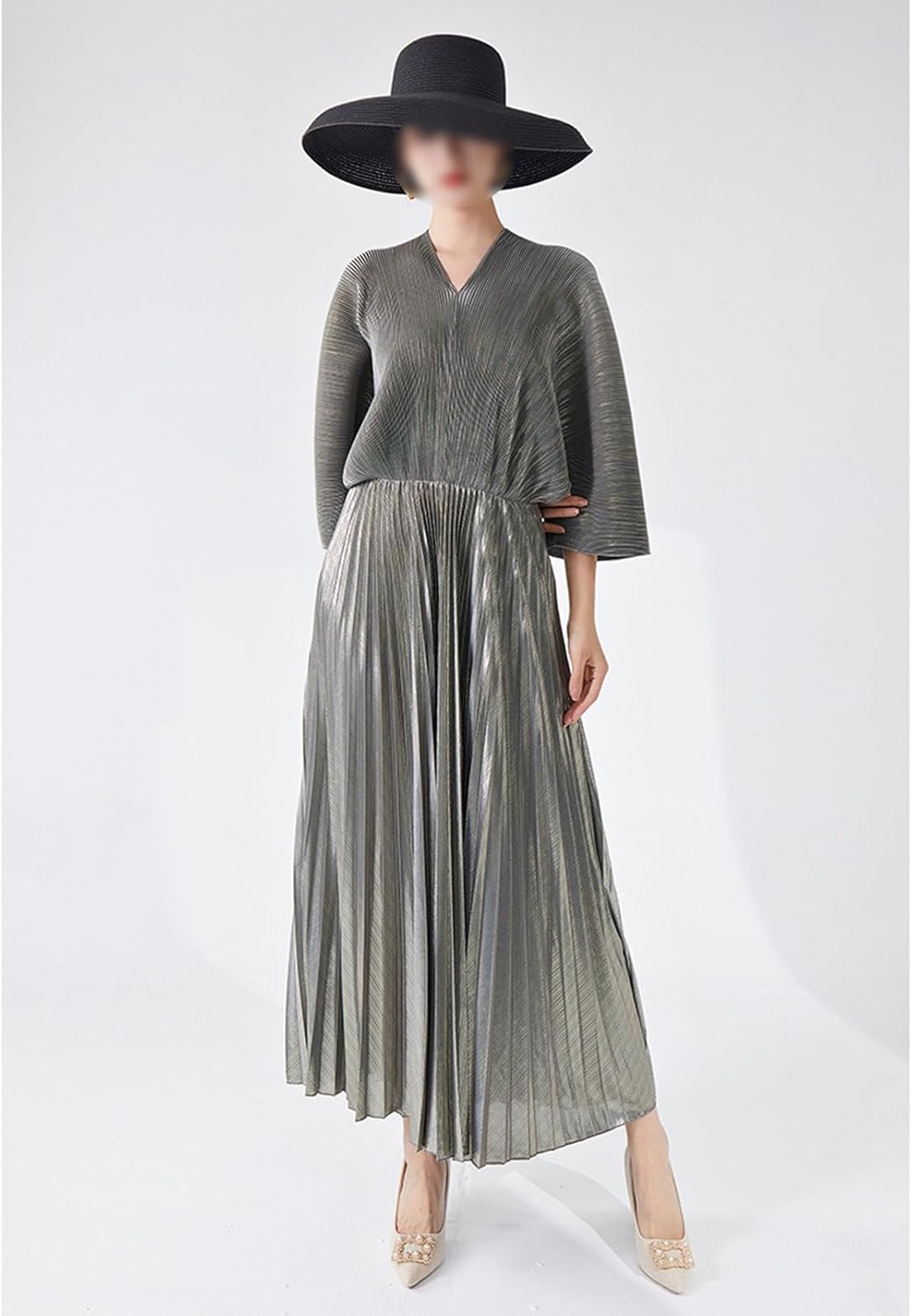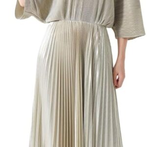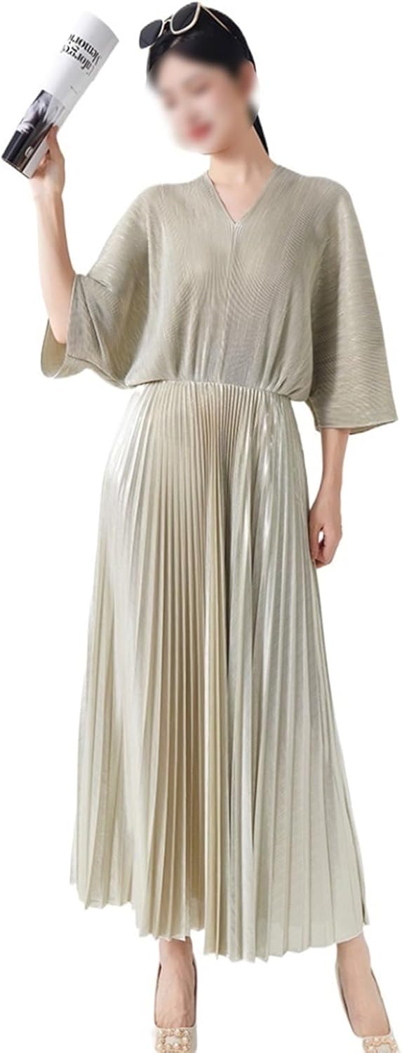 - Sundresses for Women Trendy: Sleek pleated woven fabric shapes this stunning dress that has a v neckline, short sleeves, and a blousy bodice that drapes over the fitted waist