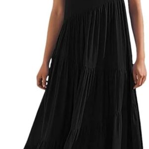 Women\u2019S Boho Loose Long Dress Short Sleeve Round Neck Asymmetric Swing Tiered Beach Maxi Casual Dresses for Travel